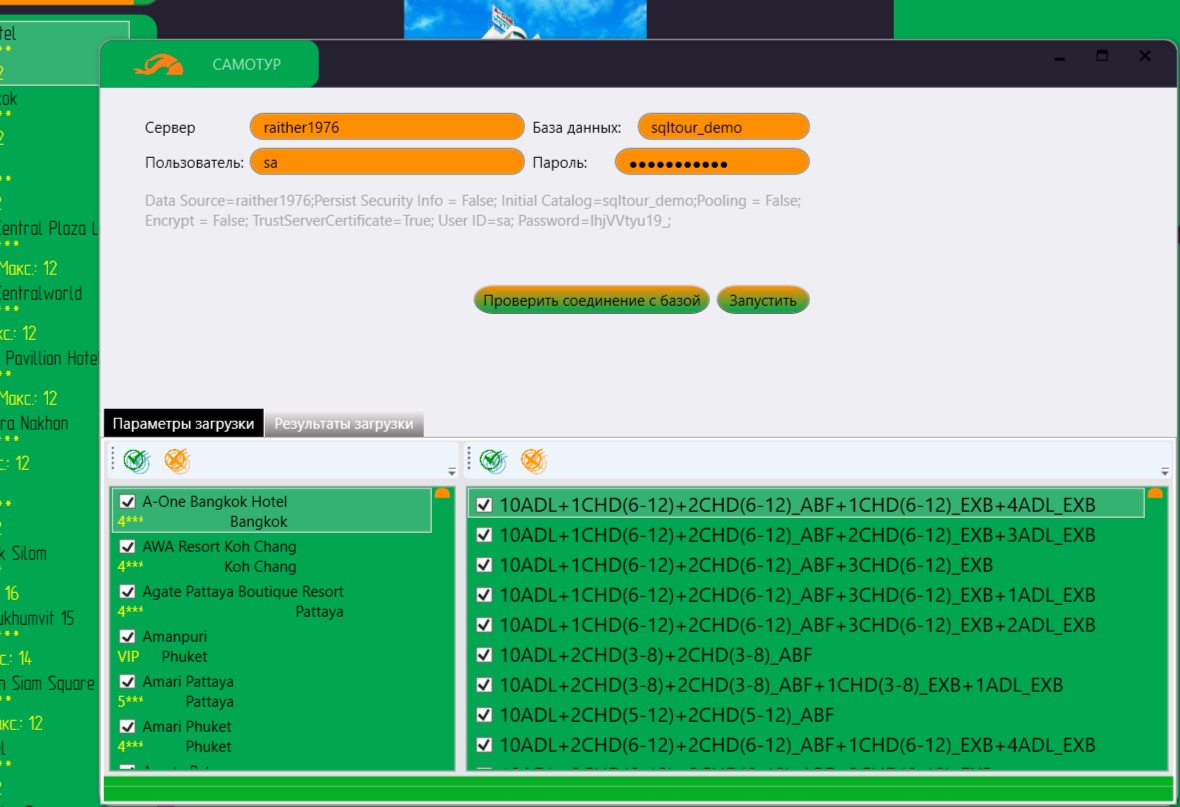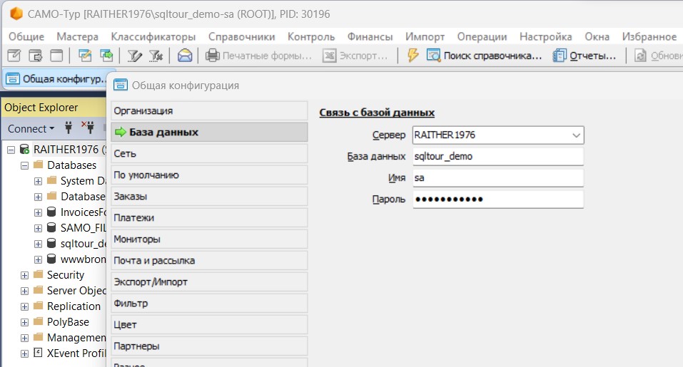 - Отредактируйте строку подключения, ее можно найти в разделе настроек приложения САМО-тур (Данные сохранятся после первогозапуска на рабочем месте)